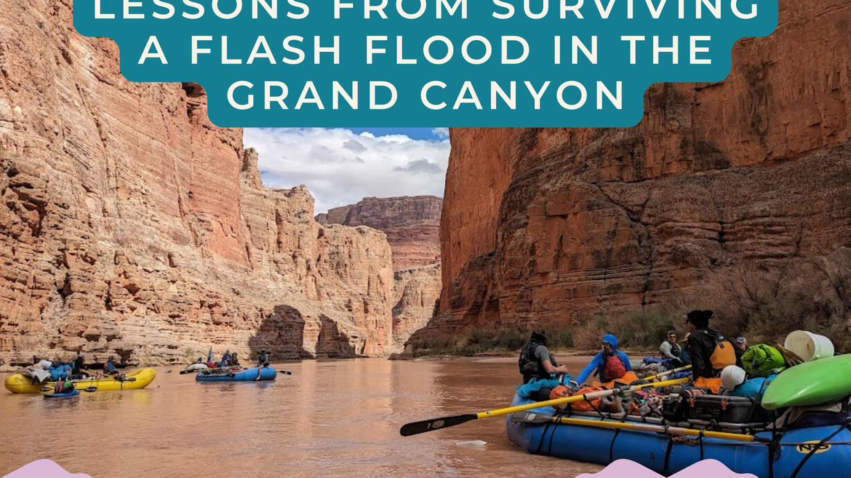 In 2023, Angie got a life-changing opportunity to spend 21 days rafting through the Grand Canyon. On Day 13, a handful of mistakes led her group to be trapped in a side canyon during a flash flood. Hear about: