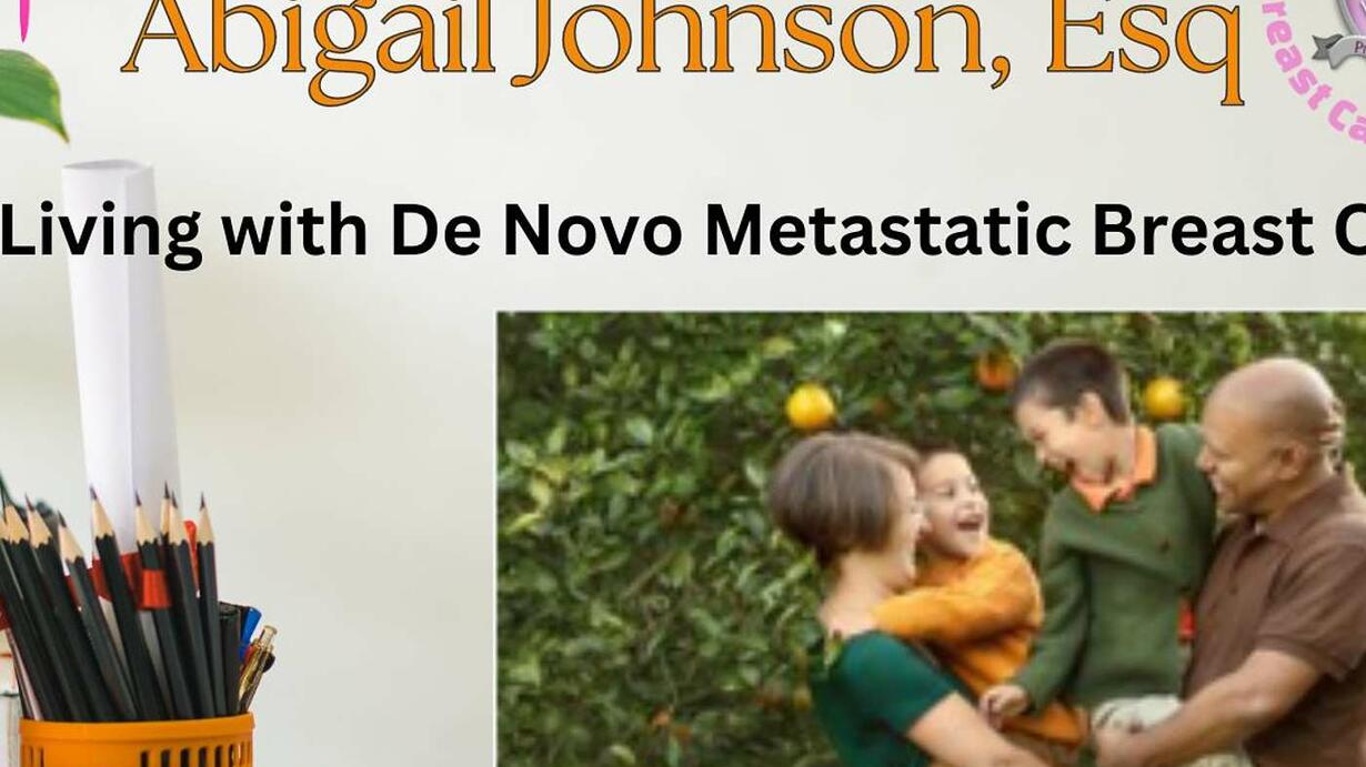 Abigail Johnston was diagnosed with de novo Stage IV Metastatic Breast Cancer (MBC) in 2017 at the age of 38, while she was tandem breastfeeding her children12. “De novo” means that her cancer was metastatic from the start, without an earlier stage diagnosis2.