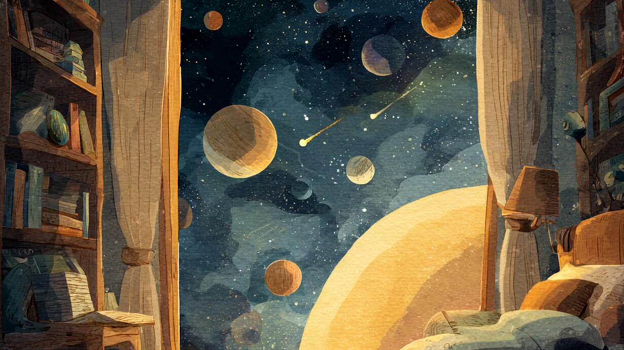 the darkness outside his window. Good Night's Space, he whispered
