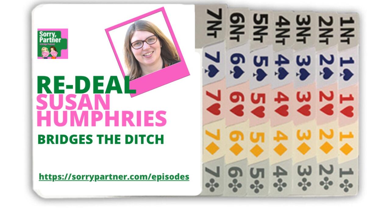 In this episode we revisit our conversation with New Zealand/Australian champion Susan Humphries. Susan talks to us about the importance of mentors in her development as a player, the pleasure of being part of the worldwide bridge community, and her addiction to the game. Plus, she shares her top tip for developing players. But first, we kibitz!