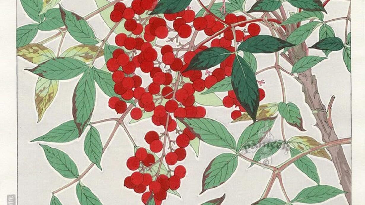 the nandina with its green leaves and bright red berries