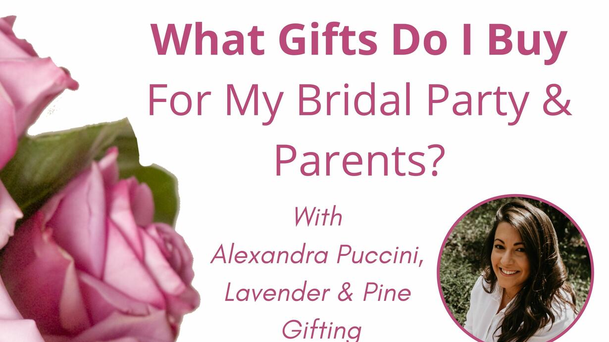 Trying to figure out who to get for wedding gifts for is a challenge, and adds one more thing to your seemingly never-ending to-do list. But trying to figure out what to get is even more challenging. From bridesmaids and groomsmen gifts, to parent gifts - this week we discuss who to buy for and how to find the perfect gifts to say thank you on your special day.