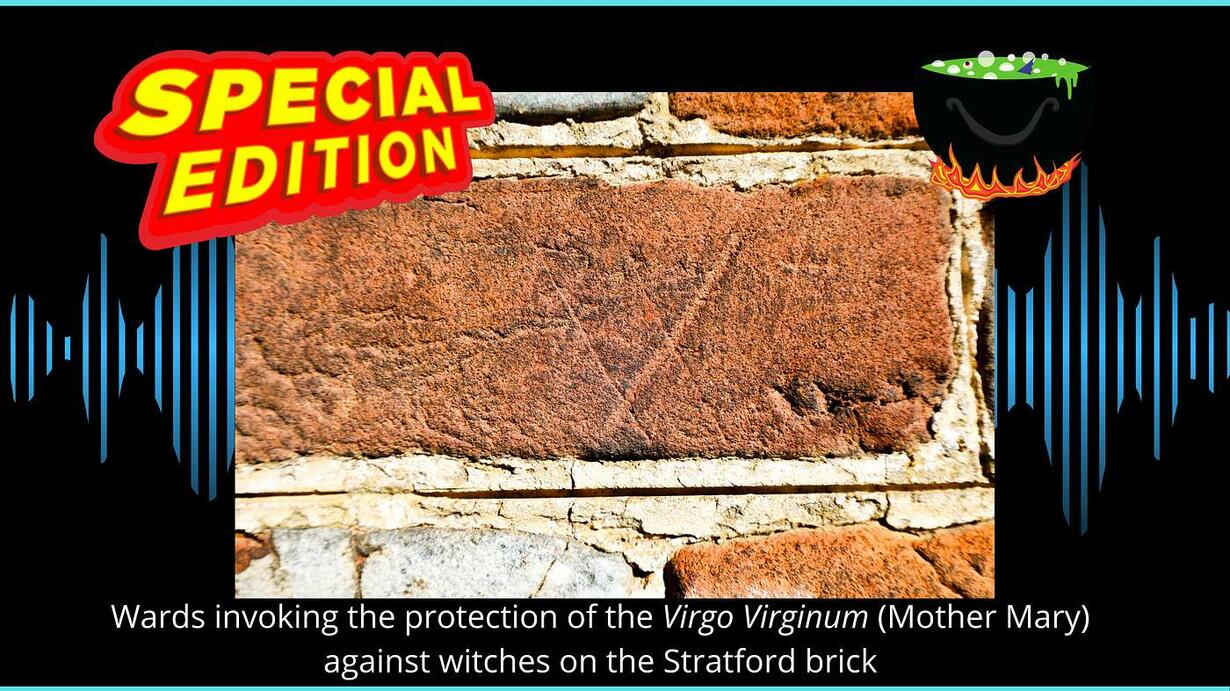 Time once again for a seasonal special edition of Stratford Mail. Visitors to Stratford are often struck by the wards against witches and evil spirits incised into its exterior brick and interior floors. These marks are reminders of our ancestors’ belief that this visible world overlapped an invisible world that was a source of both palpable wonders and terrors. Witches and conjured spirits were believed to gain access to homes through hearths, windows, and other openings, and hide in the shadowy nooks, crannies, and corners of homes. Once inside they would vex the inhabitants and ruin their property. Wards like the hexafoil or ‘daisy-wheel’ incised on the nursery floor of Stratford were proactive countermeasures to supernatural mischief. Alternatively, folks might invoke the protection of Jesus’ virgin mother, inscribing AM (Ave Maria), VV (Virgin of Virgins), or simply M (Mary) in vulnerable locations–all of these are visible on the red exterior brick of Stratford. Think of it as our spiritual security system! Colonial-era Virginians believed in witches and conjurations, but extant records indicate that Virginians were reluctant to prosecute and convict for witchcraft. Join us this month as we consider witches and witchcraft in the Virginia colony–Listen to Fire Burn and Cauldron Bubble now!