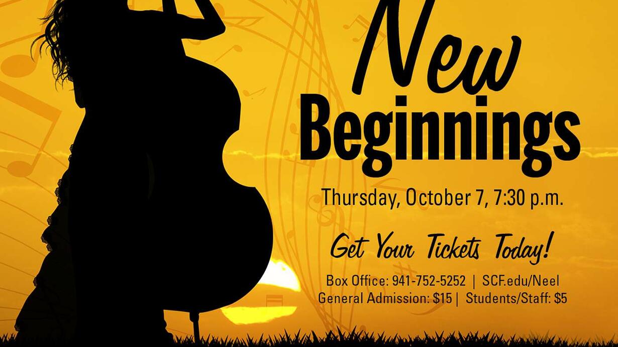 On Thursday, October 7 at 7:30 p.m. in the SCF Neel Performing Arts Center, join the SCF Music Program for our collaborative concert "New Beginnings," celebrating the return of a live audience and the feeling that this year is truly a "new beginning." This performance will feature the SCF Symphonic Band, Big Band, Jazz Combo, Concert Choir, Chamber Choir, and Guitar Ensemble.