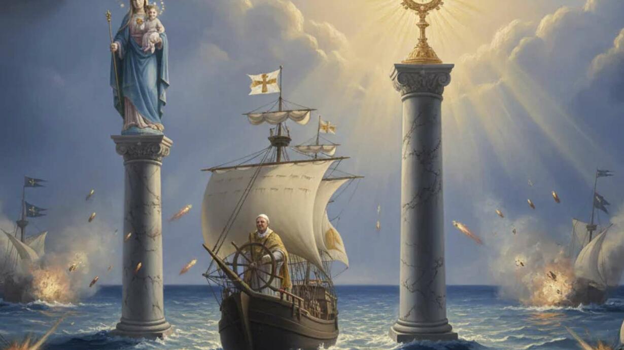Decoding the two pillars,Eucharist and Our Lady.