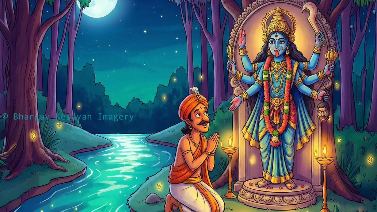 00:41 - காளியிடம் வரம் பெற்ற கதை (Tenali & Goddess Kali)