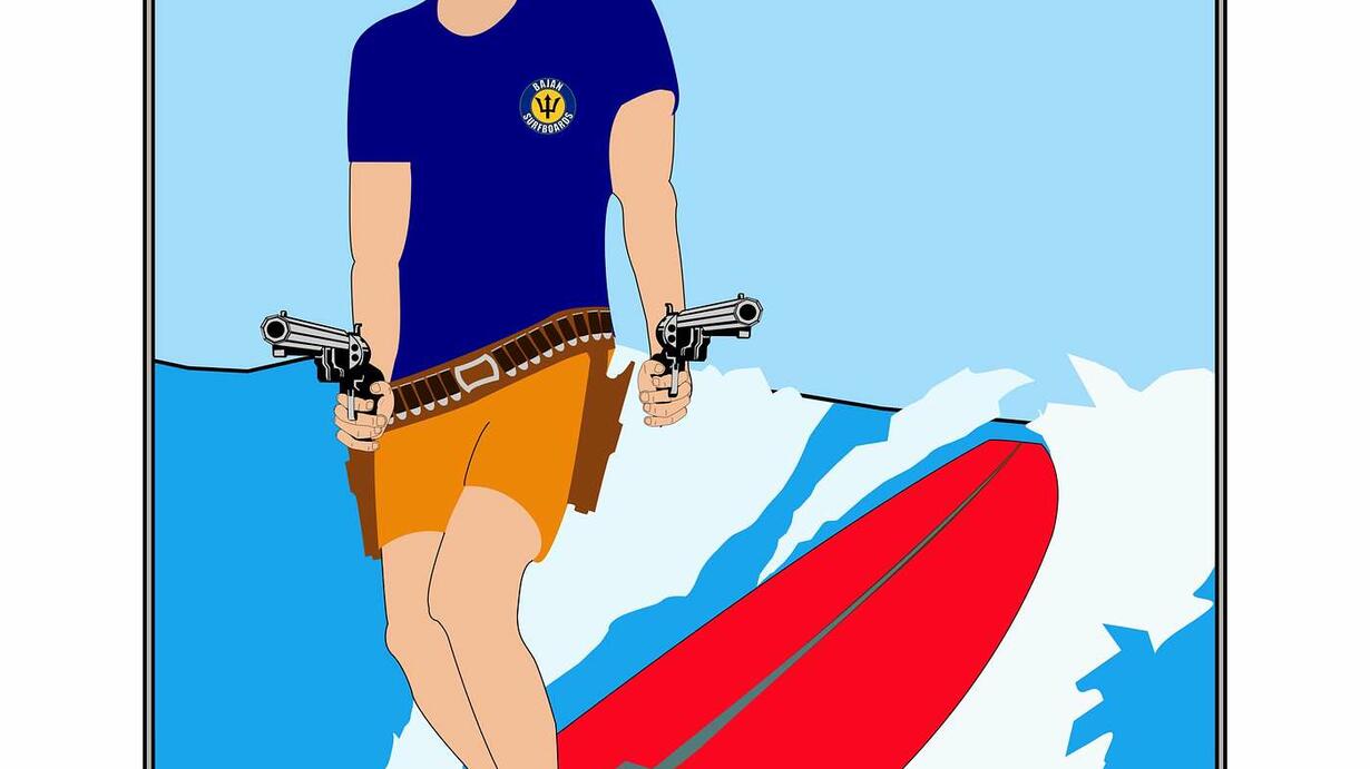 -It's On! Longboarders vs. Shortboarders the rivalry continues. Art and Devo paddle out on old longboards from the 60's. Devo is dressed up as if he has come straight out of a western movie. In his best Clint Eastwood impression, he pulls out his toy guns and tells the shortboarders, "THE PARTY'S OVER"!