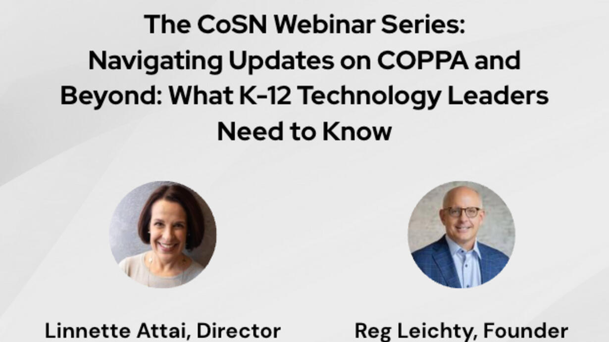 The FTC recently finalized its changes to the COPPA, and while they didn’t move forward with a number of proposed updates specific to education, there are still requirements for ed tech companies that you should know about. Join data privacy consultant Linnette Attai, director of CoSN’s Student Data Privacy and Trusted Learning initiatives and policy expert Reg Leichty, founder of Foresight Law + Policy PLLC who lead’s CoSN’s policy and advocacy for a look at what’s changed in COPPA, what hasn’t (and why). They’ll help you understand what you can expect from ed tech companies in the future (and what you should have been seeing all along) plus updates on what might be percolating in Washington, DC around potential (and long-awaited) updates to FERPA.