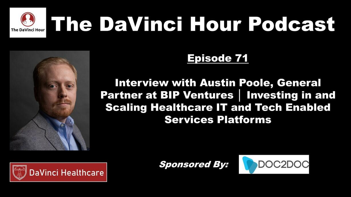 In this episode Maxwell Cooper, M.D. interviews Austin Poole, a General Partner at BIP Ventures, a venture capital firm in Atlanta, GA focused on B2B software and tech-enabled service businesses in the healthcare space. Austin gives an overview of the types and stages of companies BIP Ventures focused their investments in. Austin describes which companies have been a good fit for BIP Ventures and how those companies have been able to succeed. He also gives advice for start-up founders in terms of determining the right time to invest, finding the right investment partners, and pitching a company. Lastly, Austin discusses how he thinks healthcare IT platforms and tech-enabled services companies will make a positive impact on healthcare in the coming years.