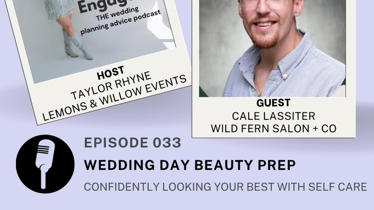 On Episode 033: “Wedding Day Beauty Prep” the talented Cale Lassiter of Wild Fern Salon + Co. came on the podcast to discuss all things beauty prep - skincare, haircare, and overall being the most confident version of yourself on your wedding day. We all get a little self conscious , especially when you’re the literal center of attention of your wedding day. Listen in to get actionable tips on how to get yourself wedding ready with the secrets of the trade from a hair and makeup artist that has seen it all.