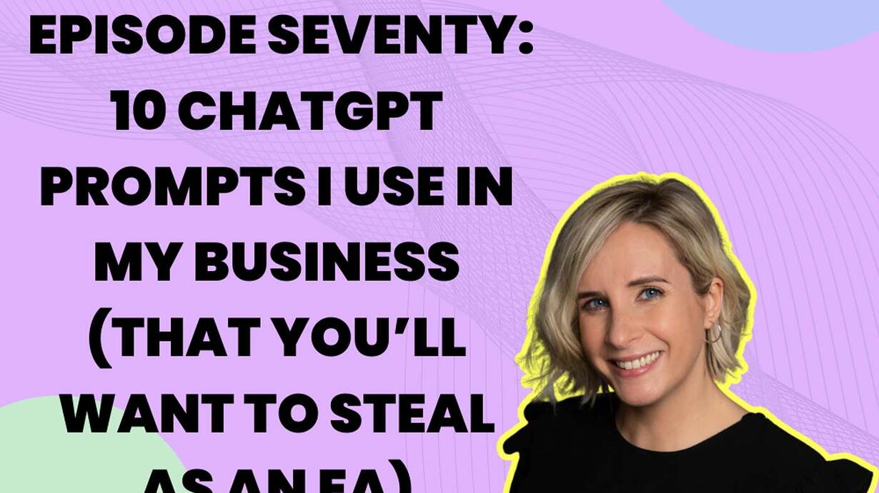 Plus, I’ve created a free EA ChatGPT Prompt Sheet to go with this episode – packed with examples you can copy, tweak and try straight away. Grab it at theeacampus.com/podcast/ep70.