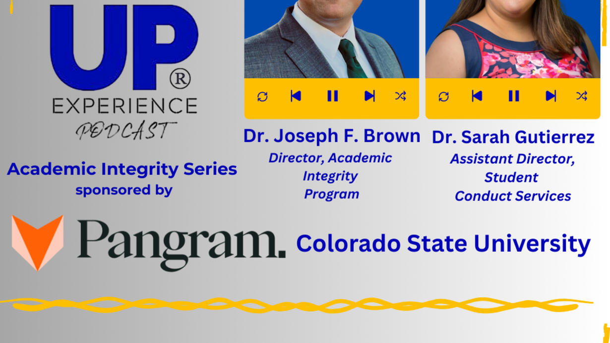 YOUR guests are Dr. Joseph F. Brown, Director, Academic Integrity Program, The Institute for Learning & Teaching, & Dr. Sarah Gutierrez, Assistant Director for Student Conduct Services, The Student Resolution Center, Colorado State University