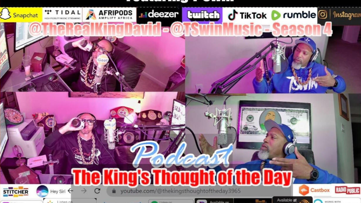 The King's Thought of the Day " Very Uncensored " Podcast - Season 4 - Episode 4 ( Presidential Special ) Featuring T-Swin Live with T-Swin @Tswinmusic @therealkingdavid Full Episode https://www.youtube.com/live/pHy7kHh0vkg?si=WmW_mbiz79CagpzM Timecodes 00:00 Intro int the King's Court Barrack Obama Calls the Show 04:25 Monologue with T-Swin 04:15 We are Political Adversaries but I respect the chair 06:00 Breaking up with Lifelong Friends over Political Differences 07:00 Had to Demote a Lifelong Friend to Level 2 from Level 3 10:00 Lifelong Friend over 20+ Years No Longer Speaking Anymore (Student Loan Forgiveness) 11:15 People who cheat the system for generations 12:10 We Need Change 12:47 I beat you "in life" so I do not need your validation nor your argument 13:30 My Peace is being robbed - what is the value of your peace ? 15:00 Road trip to Mexico (in pursuit of a Lambo Vette) 15:10 Joe Biden call the show with Casino Shout Outs 16:14 Shit Show Car Purchase in Mexico RGV 24:40 Shout out to Tito Mejia in Miami 26:40 Wanna go to Mexico (Was a Weird Scary Experience) 27:40 Had a great conversation with Pro Gambler Sean Perry (Shout out to Mikki Mays ) 28:00 Mikki Mays Beat the Venetian Casino for 11.4 Million in 1 Night and is Banned in Vegas 29:38 Sean Perry conversation Pt 2 . Told me how he evolved from Poker to the Sports Book 30:37 Being Approached by Big Money to Stake my Gambling Turnover (I always make the playoffs) 32:40 T-Swin's Back Surgery Recovery Results 34:20 I need a Cigarette for this conversion (Good Help is hard to Find) I got a story to tell 35:37 When fucking the help to get to the super star goes wrong ! 37:18 Finds out later the super star isn't all cracked up as he thought she should be (careful what you wish for ) 38:20 She's Treating your like a trick (I told you to leave her alone gone wrong) Her Cousin is her Husband ? 41:20 Got a call from a prison cell phone with threats 42:20 If loving you is wrong - i don't want to be right - You have already won ! Now Leave ! 43:43 When you meet your match or idol and it's not what its all cracked up to be. 44:20 Don't respect your boundaries 45:29 Do you have any friends with an OnlyFans Account ? What is your theory on it ? 52:40 Your Digital Footprint is forever in the Adult Business 54:17 Elon Releases the We Taxi and Optimus Robots 55:58 Positive side of AI and Optimus Robots 1:01:00 We are in the honeymoon stage of AI 1:03:00 Virtual Reality 1:04:00 Trump 24 Will Win this Election - Buckle Up for the Ride (Thank you Elon for being the Cutter) 1:04:50 Outro Please Follow Like Comment and Subscribe Thank you for watching !