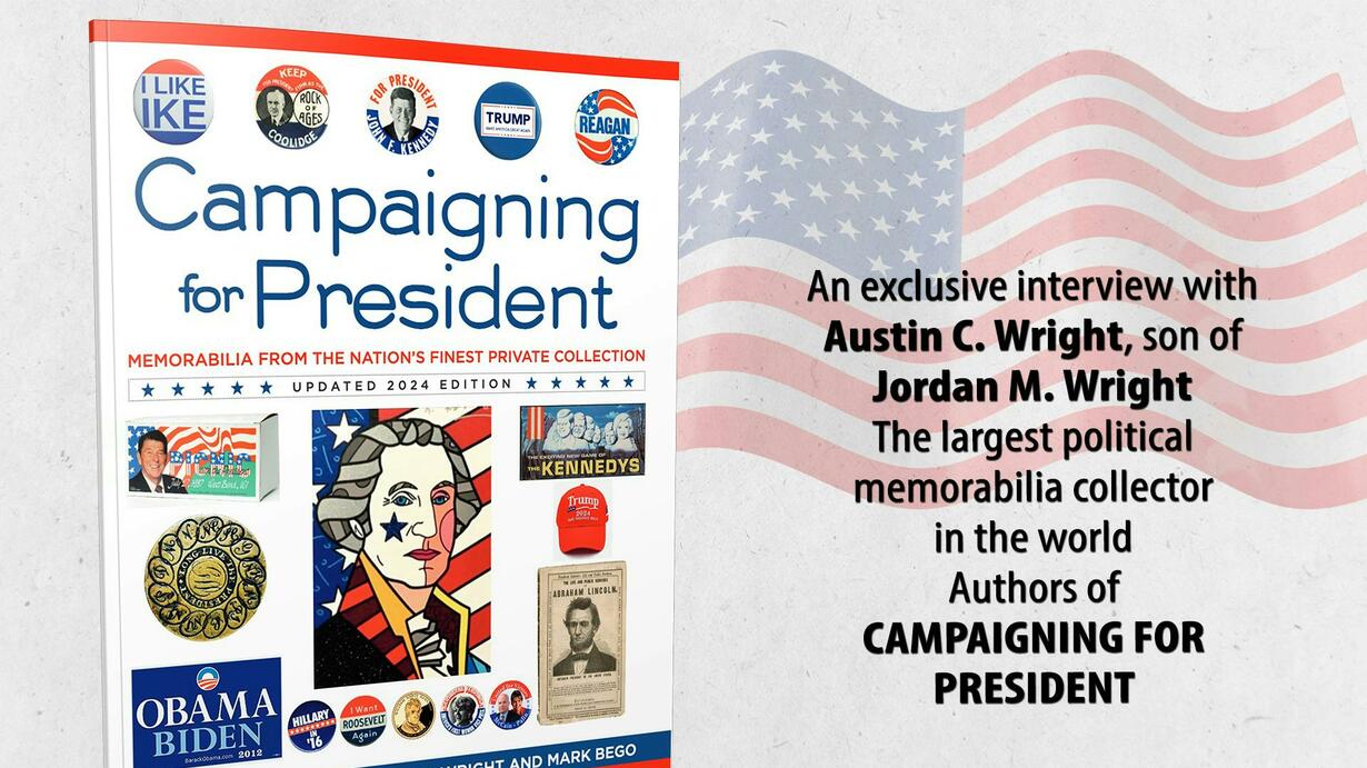 Austin C. Wright is the son of the late Jordan M. Wright & serves as Chairman of the Museum of Democracy. In this capacity, he has been able to share his father's ginormous collection with the world through the Museum & its national exhibitions. As Wright continues to grow his father’s collection, his emphasis is on ensuring it remains accessible to all, particularly the younger generations, to educate them about freedom & democracy & inspire them to engage in the political process. The book he co-wrote with his father, CAMPAIGNING FOR PRESIDENT is a comprehensive look at 'campaign paraphernalia" through the ages. Nixon; Reagan; Obama; Biden; Trump; RFK JR. & Harris. It is NOT political. Austin's father started the process and after he passed, he continued. In this fascinating interview we discuss: *What motivated your father to begin collecting? *When was the museum founded, and where were its objects displayed? *What was it like growing up surrounded by all the memorabilia? *Describe some of the most unique items in the collection. *How were most items obtained? *How did the situation with the LIU (Long Island University) collection display come about? *Why do you believe this museum is of importance to the American public? *What are the plans for the collection in 2024 and 2025
