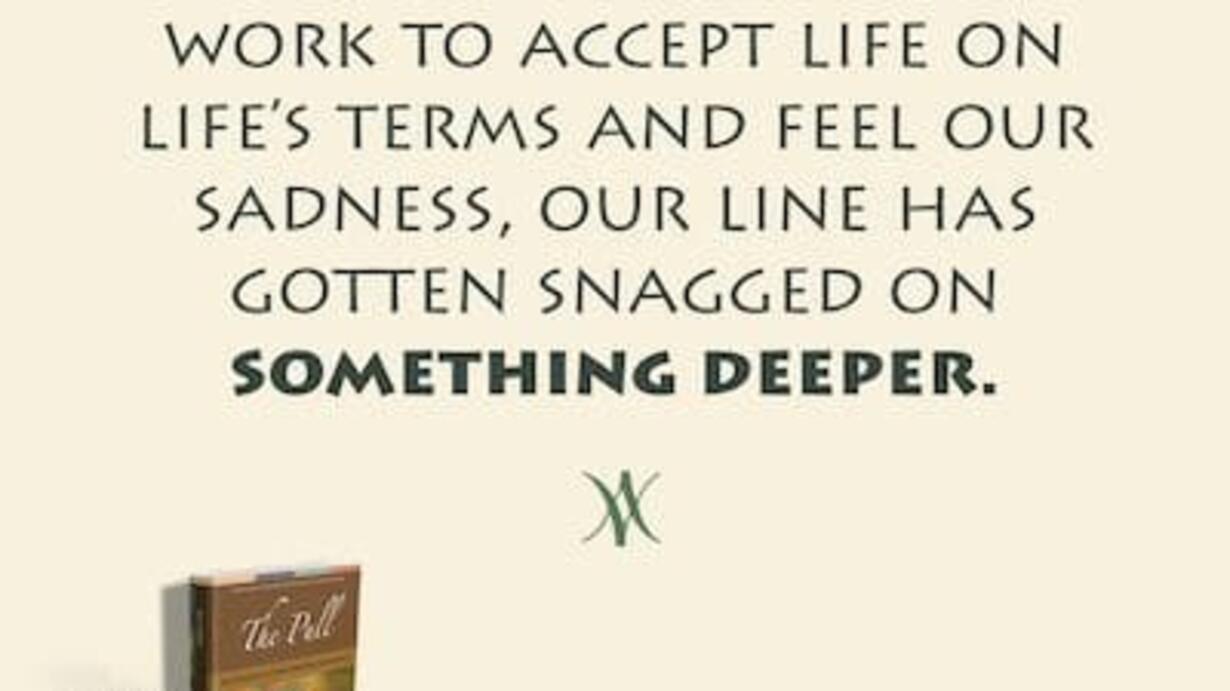 The log in our own eye that we fail to see is that there is always something we can change right now, which is our attitude. And that’s always, always, always an inside job. Whenever it doesn’t work to accept life on life’s terms and feel our sadness, our line is snagging on something deeper. This is a biggie.