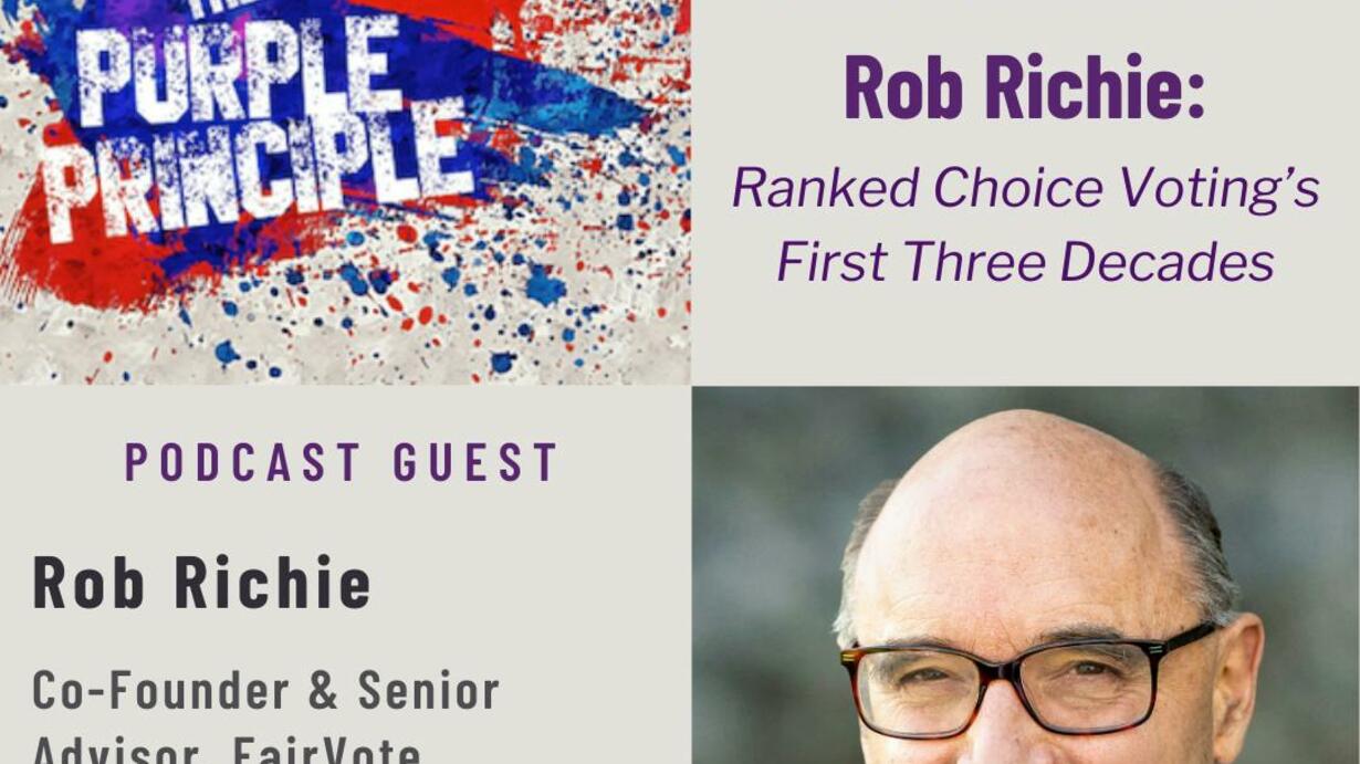 “It’s a thrilling year. It’s a tense year. I am a believer that this is a marathon,” says Rob Richie, Co-Founder and longtime Director of FairVote, the nation’s foremost catalyst for ranked choice voting elections. “There's moments of excitement– of cresting hills, of victories and sometimes defeats.” In this Purple Principle episode, Richie recounts the highs and lows throughout the steady progression of ranked choice voting in US elections since co-founding FairVote three decades ago. For example, the successful implementation of RCV elections in Portland paved the way for the nation’s first statewide ballot passage by Maine voters in 2016. That was followed by Alaska as part of Top Four voting reforms in 2020.  “Alaska and Maine, interestingly, those two states are ones where independents have done particularly well,” says Richie. “We've had governors be elected in both states as independents, and they're states that were always on the reform radar.”  In 2024, ranked choice voting has moved off the radar and onto ballots in multiple states– as a stand alone reform in Oregon and as part of Top Four or Five election reforms in Nevada, Colorado and Idaho. In the same period, though, nearly a dozen GOP dominated state legislatures have outlawed RCV.  Does that make it critical for RCV to pass in multiple states this election year? Richie, now a Senior Advisor to Fairvote, thinks RCV has a logic and a momentum all its own aside from election results. “Younger Americans, 50% of them do not identify with the major parties at this point,” says Richie. “So we’re going to get away from two choice politics and Ranked Choice Voting will be part of that. But whether it happens doesn't depend on November.” Tune in to learn more about the first thirty years of RCV in the USA, from college campuses to city, town and county elections, and now to multiple state ballots in the same election cycle. And check out Fairvote.org for much more info on RCV.  The Purple Principle is a Fluent Knowledge production; original music by Ryan Adair Rooney.