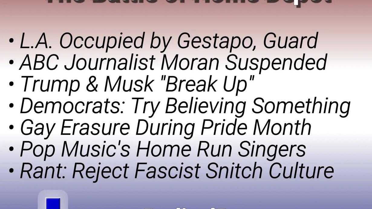Trump escalates tensions over L.A. ICE Raids; ABC News suspends Terry Moran for honesty; Joni Ernst triples down on Medicaid death; Critiquing "Big Tent" Democrats; Gay erasure during Pride Month; Home Run Singers; Snitching on trans healthcare for minors.