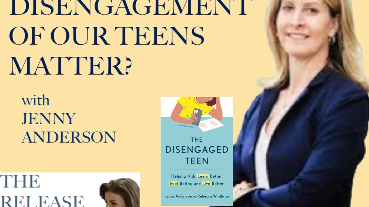 There is a theory that teens these days are increasingly disengaged in school, and that it matters far more than we think. My guest this week is Jenny Anderson, coauthor of THE DISENGAGED TEEN, a toolkit for the parents of checked out and stressed out teens, to get them engaged in their own learning. And in their own futures. Anderson is an award winning journalist for The NY Times, Institutional Investor and The Atlantic to name a few...and a mother of teens herself.