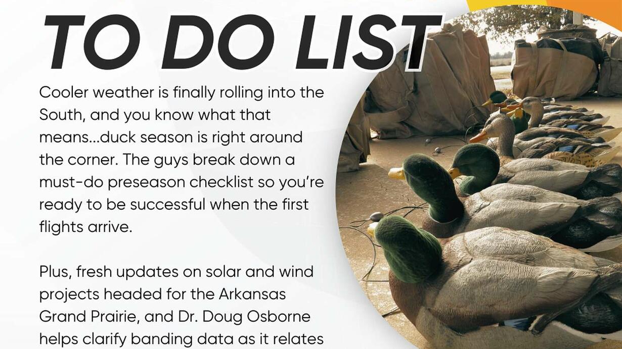 Cooler weather is finally rolling into the South, and you know what that means...duck season is right around the corner. The guys break down a must-do preseason checklist so you’re ready to be successful when the first flights arrive.