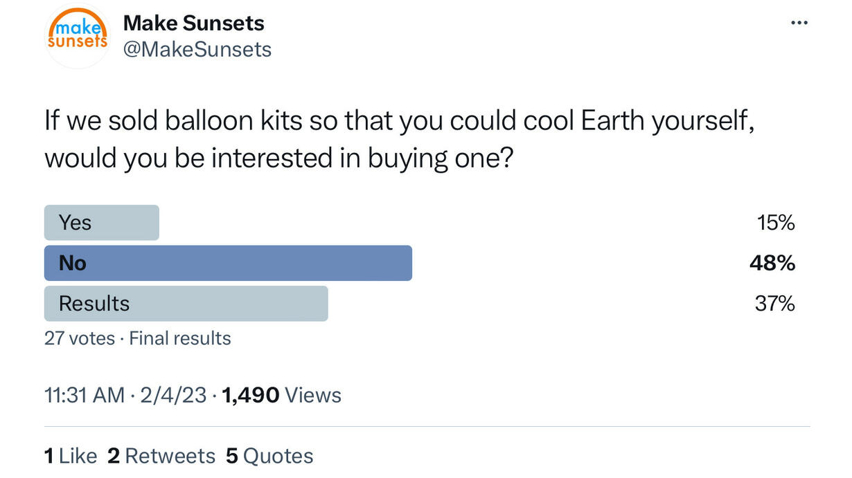 This three part story on Make Sunsets launching chemical-laden weather balloons from Nevada to block the sun’s rays just two weeks ago - with full knowledge and tacit approval from the White House, FAA and FBI - should be the biggest moab (mother of all bombshells) across the entire Substack platform since Seymour Hirsch dropped his story about Joe Biden blowing up the Nord Stream pipeline and further instigating World War III.
