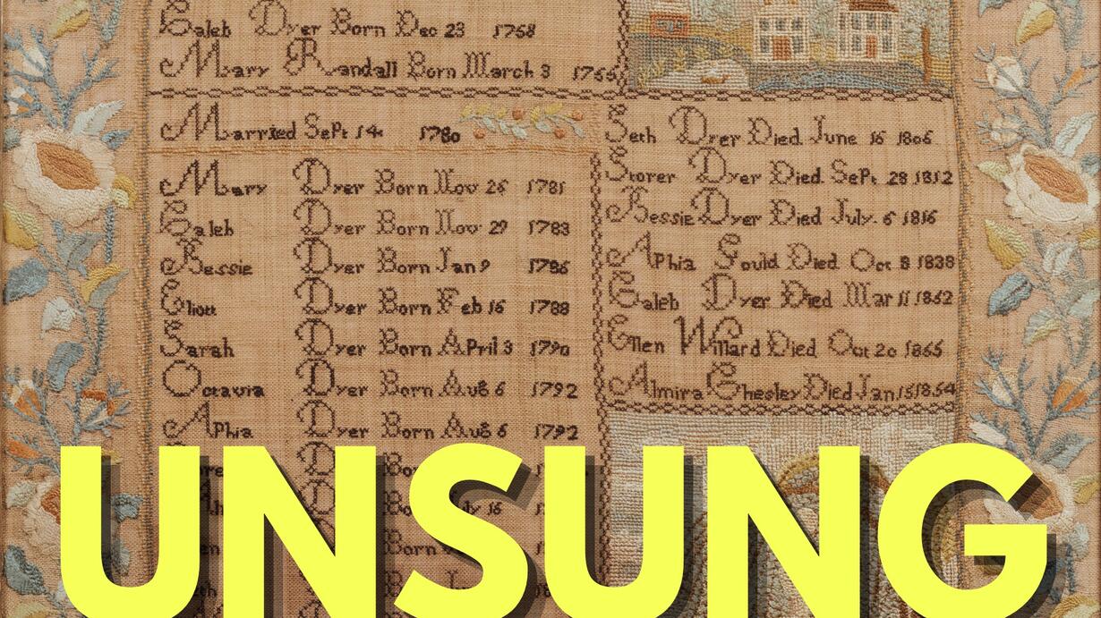 Our theme song is Frogs Legs Rag, composed by James Scott and performed by Kevin MacLeod, licensed under Creative Commons. The mid-episode audio is “Nothing like that in our family,” composed by Seymour Furth with lyrics by William A. Heelan and performed by Billy Murray on April 24, 1906; the audio is in the public domain and is available via the Library of Congress National Jukebox. The episode image is “Sampler,” by Sophia Dyer, 1819; the image is in the public domain and is available via the Metropolitan Museum of Art.
