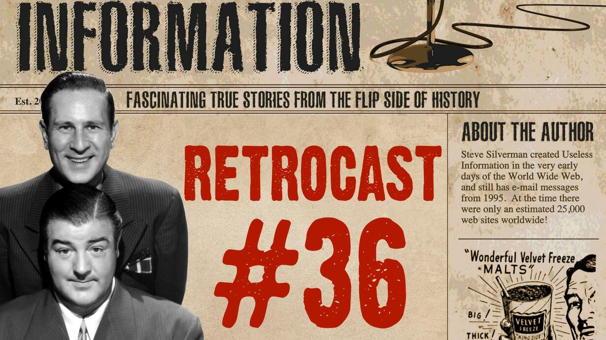 Abbott & Costello agree to perform in a boy’s backyard for 70 cents, parents sue a milk dairy because their son grew too tall, a man sleeps only 2 hours per day for 33 years, and much more! Images, links, and transcripts for this podcast can be found at https://uselessinformation.org/retrocast-36-podcast-245/ Listen to my interview with cartoonist Leigh Rubin discussing how his parents were The First Jewish Couple Married on National Television: https://uselessinformation.org/the-first-jewish-couple-married-on-national-tv/ Also, you can see the original Bride & Groom episode where his parents were married at https://www.youtube.com/watch?v=zl8943Q48X4 You can follow the Useless Information Podcast on these platforms: Facebook: https://www.facebook.com/uselessinformationpodcast X (Twitter): https://t.co/7pV2H8iXJV Reddit: https://www.reddit.com/r/FlipSideofHistory/ The Useless Information Podcast is a member of the Airwave Media podcast network. Visit https://www.airwavemedia.com/ to listen to more great podcasts just like this one. Please contact advertising@airwavemedia.com if you would like to advertise on our podcast. Learn more about your ad choices. Visit megaphone.fm/adchoices