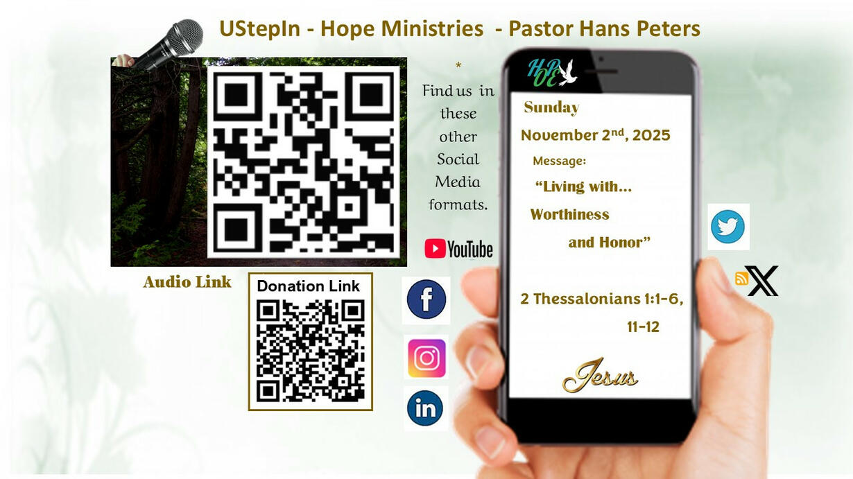 Paul often encouraged believers to live out grace in their relationships, forgiving one another as God has forgiven each of us. Grace teaches us to let go of bitterness and embrace the freedom that comes from forgiving others. If you would like us to pray for you, please send your prayer request to: pastor@ustepin.com If you would like to see this or previous messages, either as video or audio versions, please visit us at: https://www.ustepin.com If you would like to be a part of this ministry and support the creation of these videos with a gift, please e-transfer your gift to: giving@ustepin.com or use the QR Code provided. (please note that no tax receipts will be issued) Copyright UStepIn Hope Ministries 2025
