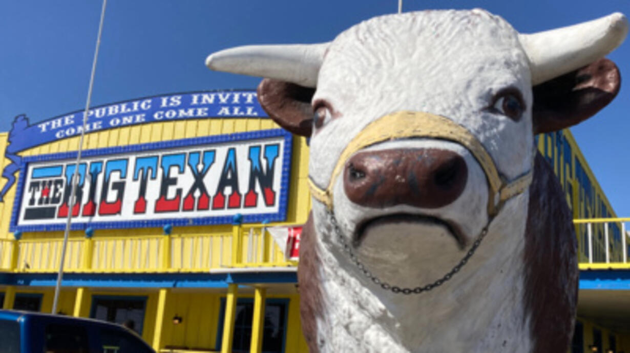 Unlike many places visited in this series, The Big Texan Steak Ranch isn’t hidden off some hard to find back road, and isn’t exactly starved for attention. But while it migrated to I-40's shoulder over 50 years ago, its story was absolutely born on Route 66, and flies in the face of anyone who might make the mistake of dismissing Amarillo as “dull.” What’s more, when you enjoy a meal there you’re not just getting prime rib and potatoes, but the kind of fun house “eatertainment” experience the good old American road trip was once known for. Join us as we step inside this delightfully over the top steakhouse to learn of its origins from 2nd generation owner Bobby Lee, hear stories from its first greeter Dale “Tex” Burrows, enjoy a tableside serenade from singing cowboy troubadours and even cheer on a contestant bold enough to tackle their infamous 72 oz Steak Challenge! https://www.bigtexan.com/