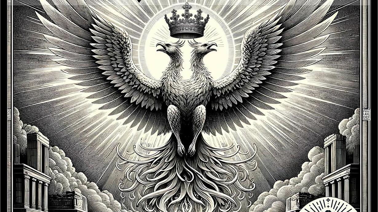 In the podcast, the evolution of the Square and Compass, the primary symbol of the "Blue Lodge," is examined after the hosts' journey through the Scottish Rite degrees. It is now seen as a more profound representation, with the Compass over the Square symbolizing Spirit ruling over the material, and the 'G' inside representing the "Grand Architect of the Universe." The discussion also covers the double-headed eagle, the emblem of the Scottish Rite, which symbolizes the unity of human and divine nature and the concept of equilibrium.