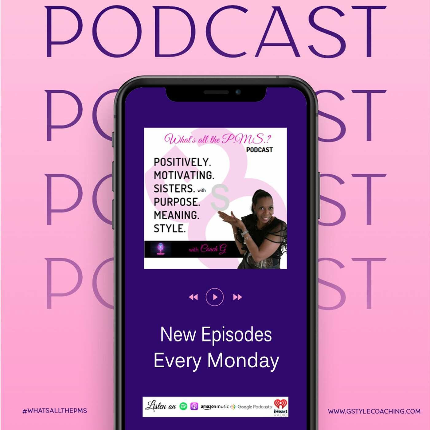 What's all the P.M.S.? with Coach G is Positively. Motivating. Sisters. with Purpose. Meaning. Style. Are you ready for POSITIVE conversations inspiring you to your next level? Do you need MOTIVATION to get you growing? Are you a SISTER (woman, leader, boss, mom, wife, female, her, she)? Are you seeking PURPOSE in your life? Do you know the MEANING for which you stand? Do you know your STYLE is your unique authenticator? If you answered "Yes" to any one of these questions, this podcast is designed with you in mind which embodies the whole you...mentally, emotionally, physically, financially, and spiritually. Our topics of conversation will cover your health (mentally & physically), career, finances, business, spiritual life, community, and personal care. Coach G is passionate about you winning in your personal and professional life growth as your empowerment speaker and leadership & growth coach strategist. “Sisters, we are on a journey in connecting you from where you are to your what’s next with Purpose. Meaning. Style.” And, IT ALL STARTS WITH YOU!