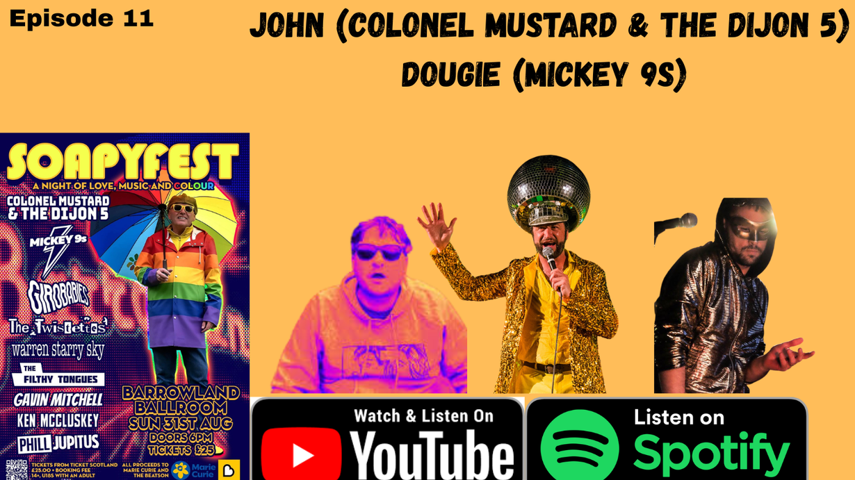 With one week to go before the big one at the Barrowland Ballroom we thought we would get a chat with some artists who are performing at Soapyfest on Sunday 31st August. All proceeds from the show will go to Marie Curie and The Beatson in honour of our good friend John Soapy Soutar. Get yioiur tickets from Tickets Scotland by clicking here: https://shorturl.at/xUVP5 support You Call That Radio here: http://patreon.com/youcallthatradio . Today we discuss the legacy of our friend Soapy, how hard is to cover a James song, The Greasy Pole / Marymass fete in Irvine, Foam parties, CBD and CBT , Jeremy Corbyn, Independence, the barras backstage area, the mickey 9s gasmask guy, a creative martyrs nuclear lightning story, the old firm, emptying venues that hate your music , festival season, and the new Girobabies album 'Dreams Are Mental'