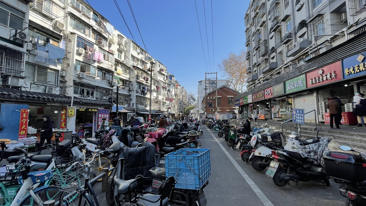 This curiously named lane, marked by a stone archway, hosts an open-air market hemmed in by tall, dense residential buildings. Mobile vendors, traditional snack stalls, breakfast shops, butchers, and seafood stands huddle together, with a central lot crammed with bicycles and scooters. It serves as the local wet market, breakfast spot, and a hangout where elders idly stroll.