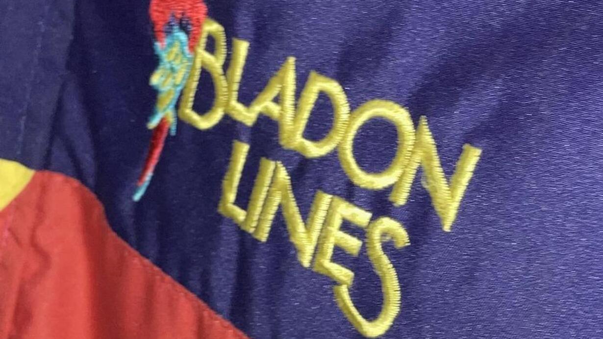 The famous red, yellow and blue Bladon Lines jackets led to the parrot logo (11:00)