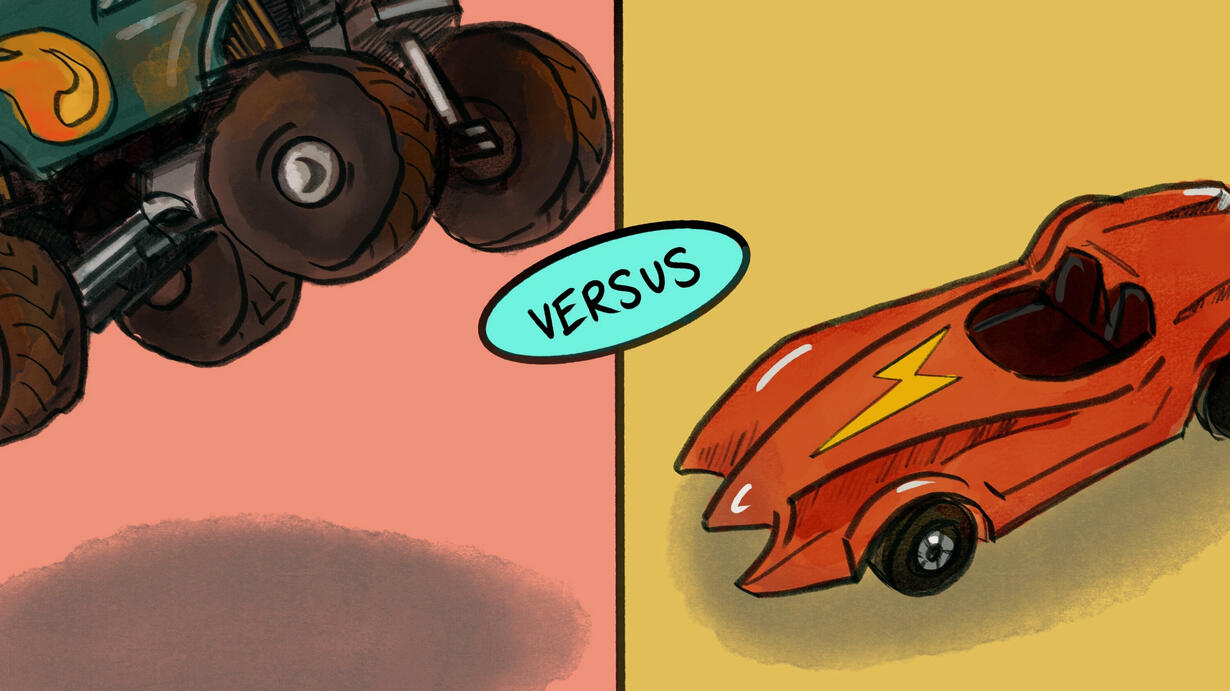 Whether you like your wheels big or small, this debate is for you! It’s Monster Trucks vs Hot Wheels. It’s a battle between Brains On besties Marc Sanchez and Sanden Totten. Marc goes full throttle for Team Monster Trucks and Sanden speeds toward victory for Team Hot Wheels. Who will win? Head over to smashboom.org to vote and listen to see who our judge crowns the king of cars.