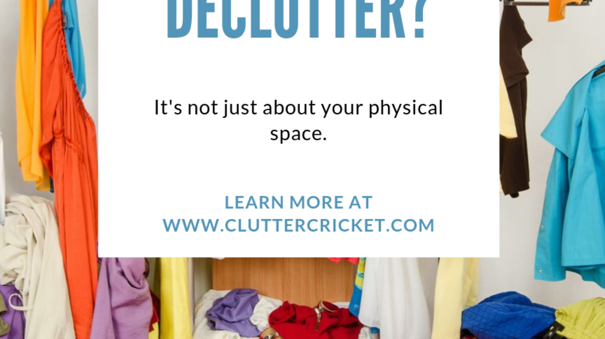 Decluttering is about so much more than just how your space looks. Living in clutter affects more than just appearances. Spend some time with me today and learn about how decluttering affects your life. You can also check me out at: Www.cluttercricket.com Www.facebook.com/cluttercricket Www.Instagram.com/cluttercricket Www.twitter.com/cluttercricket Www.pinterest.com/cluttercricket