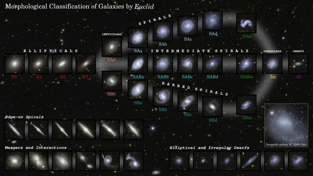 + 0) Nueva clasificación morfológica de galaxias de Hubble por el telescopio espacial Euclides. https://phys.org/news/2025-11-euclid-galaxy-evolution.html