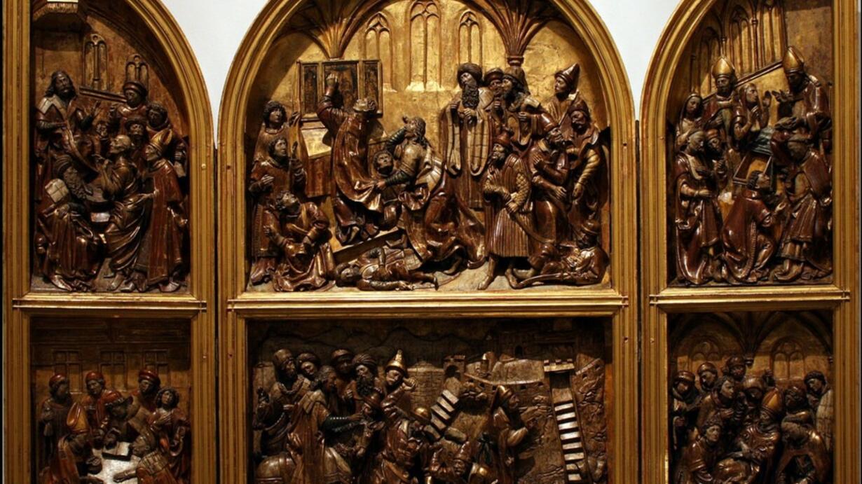 Gotycko – renesansowe, rzeźbione dzieło sztuki na sześciu przestrzeniach relacjonuje nam najważniejsze sceny z życia głównego patrona Polski. Hagiografia przenika się tutaj z legendą oraz potwierdzonymi cudami. Ukazuje wskrzeszonego Piotra zaświadczającego prawo Stanisława do wsi Piotrawin. Przedstawia moment jego zabójstwa dokonany przez króla Bolesława Śmiałego i bezczeszczenie jego zwłok oraz prezentuje ponownie, cudownie zrośnięte członki ciała Świętego.