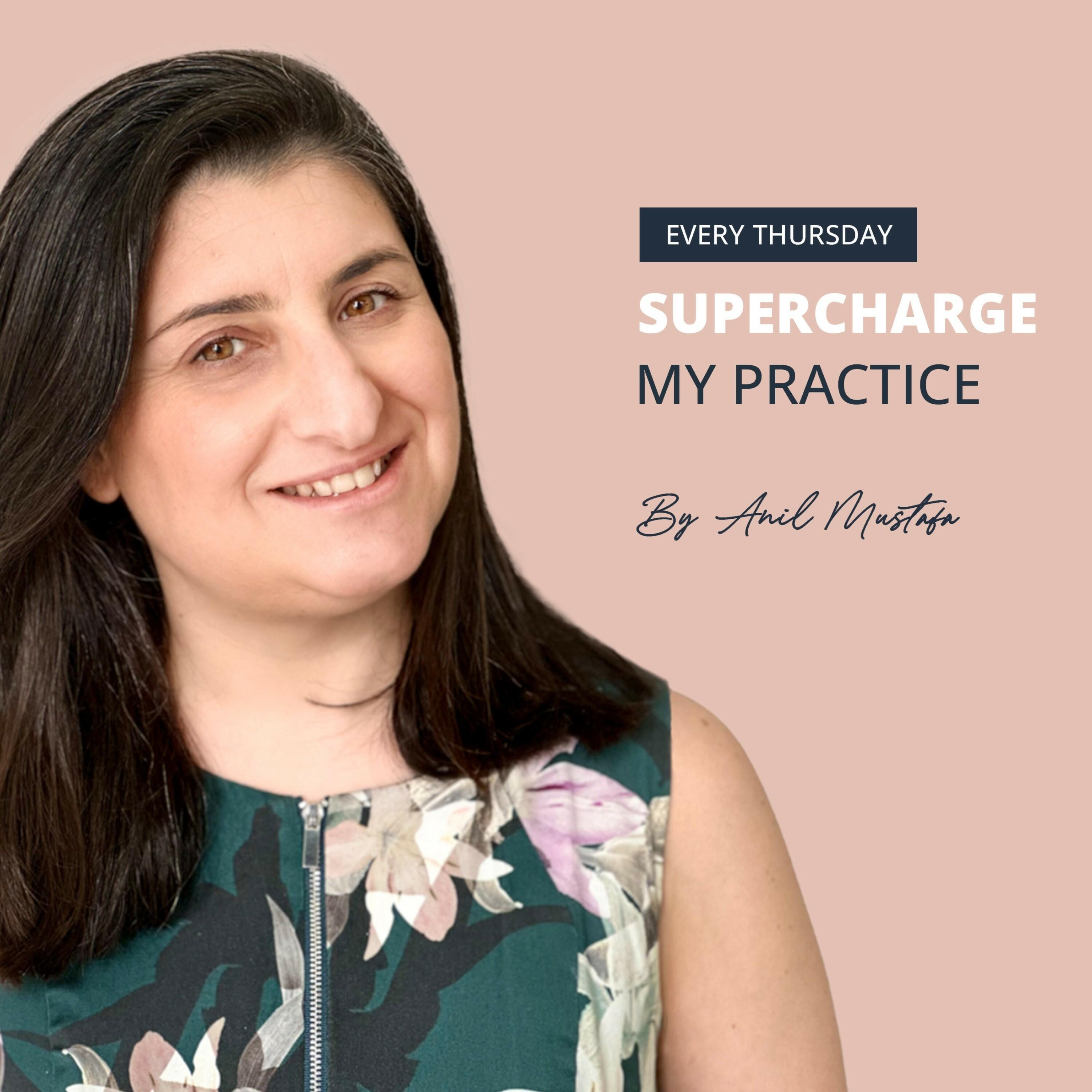 Welcome to ‘Supercharge My Practice’, a podcast dedicated to helping natural health practitioners build a thriving and fulfilling practice. Hosted by Anil Mustafa, a practitioner herself with over 22 years of clinical experience, this podcast offers a wealth of insights. Each episode features engaging discussions with leading practitioners and industry experts, uncovering proven strategies, inspiring stories, and actionable steps that will help you unlock your potential, and maximise your success. Proudly sponsored by My Appointments, ’Supercharge My Practice’ is an essential asset for effectively navigating the intricacies of managing a thriving natural health business. Tune in to embark on a journey toward heightened success and fulfilment in practice. About your host. Anil Mustafa graduated as a Myotherapist in 2001. Without any business or marketing experience, and a lot of trial and error, she built a successful multi-disciplinary practice, pilates studio and gym. She is a mother of 4 and co-founder of My Appointments.