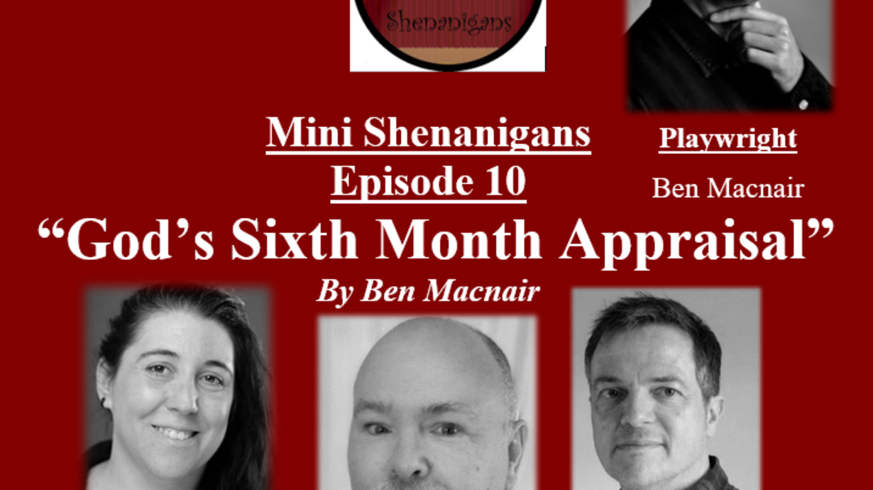 Our play this week is entitled "Gods Sixth Month Appraisal" and is written by Staffordshire based playwright Ben Macnair (https://sheilanagigblog.com/ben-macnair/, https://arachnepress.com/authors-editors-and-poets/poets-a-d-by-first-name/ben-macnair/ & https://x.com/benmacnair)