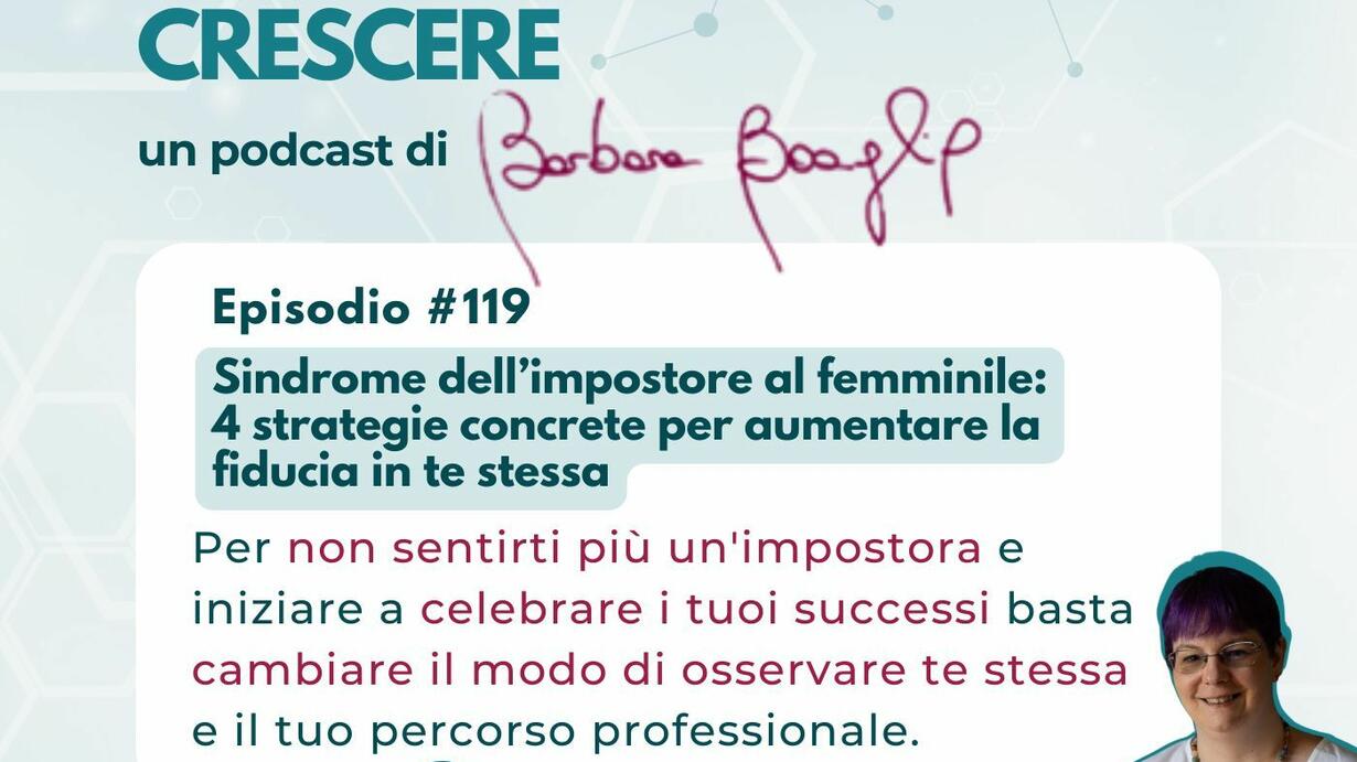 Un episodio dedicato a tutte le professioniste, freelance e imprenditrici che vogliono liberarsi dal senso di inadeguatezza, imparare a riconoscere il proprio valore autentico e rafforzare la fiducia in sé stesse e la propria autostima professionale. L’importante è non lasciarsi sopraffare da questi momenti, imparando a riconoscerli, accettandoli e utilizzando gli strumenti giusti per superarli.