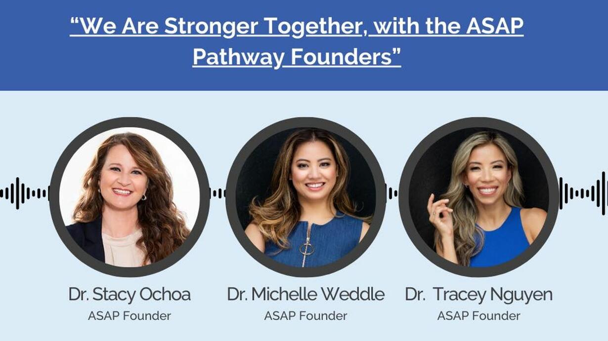 The podcast features a conversation between Drs. Tracey Nguyen, Michelle Weddle, and Stacy Ochoa. They are the founders of ASAP Pathway. They discuss the importance of considering the temporomandibular joint (TMJ) in growth and development management. They have recently started a live course on TMJ to help practitioners incorporate this knowledge into their practice. They have also revamped their courses on TMD, early ortho intervention, skeletal expansion, and other topics to focus on practical application and implementation. They emphasize the importance of being able to apply what is learned in the courses to help children right away.