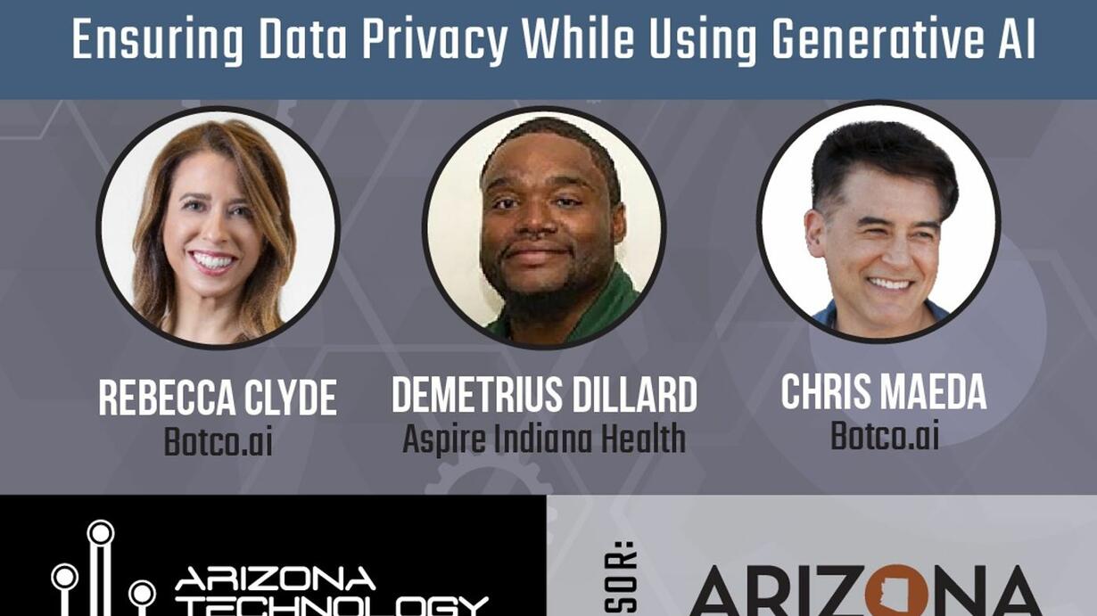 Ensuring Data Privacy When Using Generative AI E39 What should executives keep in mind when considering the use of generative artificial intelligence (AI) to ensure their organization's data privacy? The June 2023 episode of the Arizona Technology Council's AZTechCast podcast featured experts including Rebecca Clyde, co-founder and CEO of Botco.ai; Demetrius Dillard, senior director of […] The post Ensuring Data Privacy When Using Generative AI E39 appeared first on Business RadioX ®.
