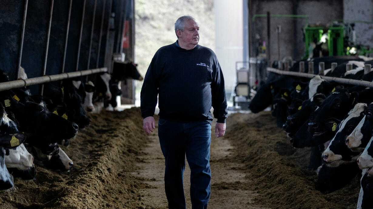Martin Pinholt begyndte i efteråret at give sine køer det lovpligtige fodertilsætningsstof Bovaer for at nedbringe køernes udledning af metan, men køerne fik det hurtigt dårligt, spiste mindre og gav mindre mælk, og da flere køer pludseligt kollapsede, stoppede han med at give køerne Bovaer – selvom han skal for at følge loven.