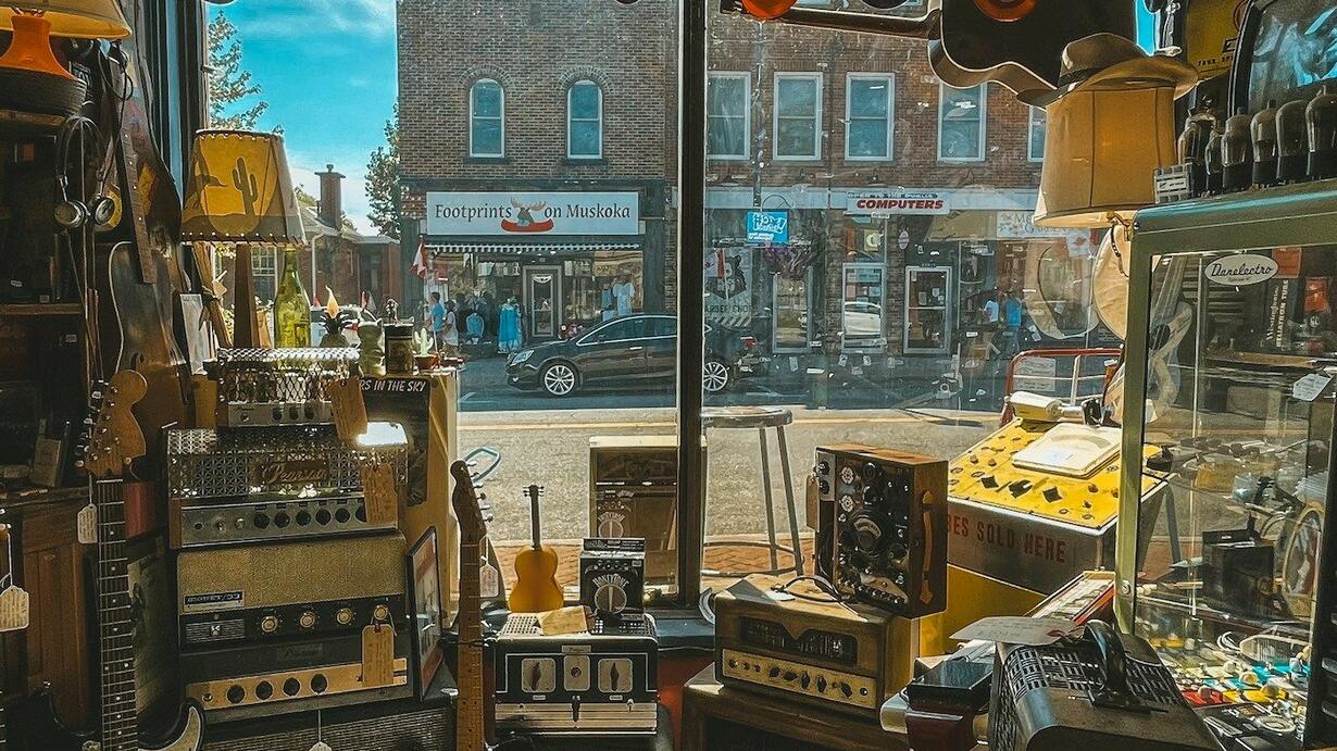 old Music Shop. Despite the building's tired appearance, with boxes
