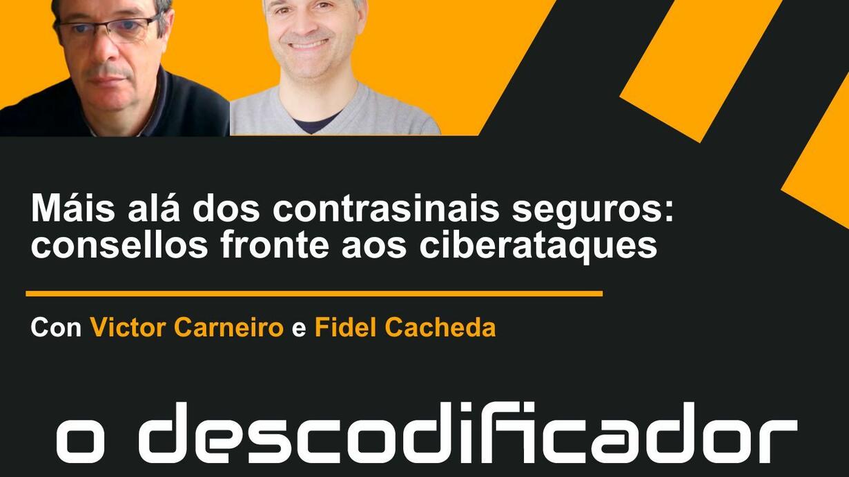 Contas de correo electrónico, en plataformas de streaming, en aplicacións do móbil... Todas e cada unha delas requiren de contrasinais para poder usar os seus servizos. Pero non vale calquera clave: ten que ter un mínimo de oito caracteres, combinar letras maiúsculas con minúsculas, que aparezan números e varios signos ortográficos... Unha longa lista de requisitos para garantir a seguridade da túa conta. Este é un dos principais consellos dos investigadores do CITIC Victor Carneiro e Fidel Cacheda, que levan máis dunha década traballando en cuestións relacionadas coa ciberseguridade. No novo episodio de O Descodificador, os científicos da UDC achegan varios consellos para non caer nas trampas da internet e avanzan o seu último proxecto, que bota man da IA para facerlle fronte á ciberdelincuencia.