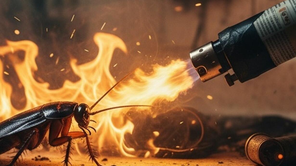 Em um incidente trágico na cidade de Osan, Coreia do Sul, uma mulher na faixa dos 20 anos iniciou um incêndio em seu prédio ao tentar matar uma barata usando um lança-chamas improvisado (spray inflamável e isqueiro), um método que ela alegou ter usado anteriormente; as chamas se espalharam rapidamente e, infelizmente, resultaram na morte de uma vizinha do quinto andar, que caiu da janela ao tentar escapar, mas não antes de salvar seu bebê recém-nascido, enquanto outras oito pessoas ficaram feridas por inalação de fumaça, e a responsável pelo ato enfrenta acusações de negligência resultando em morte.