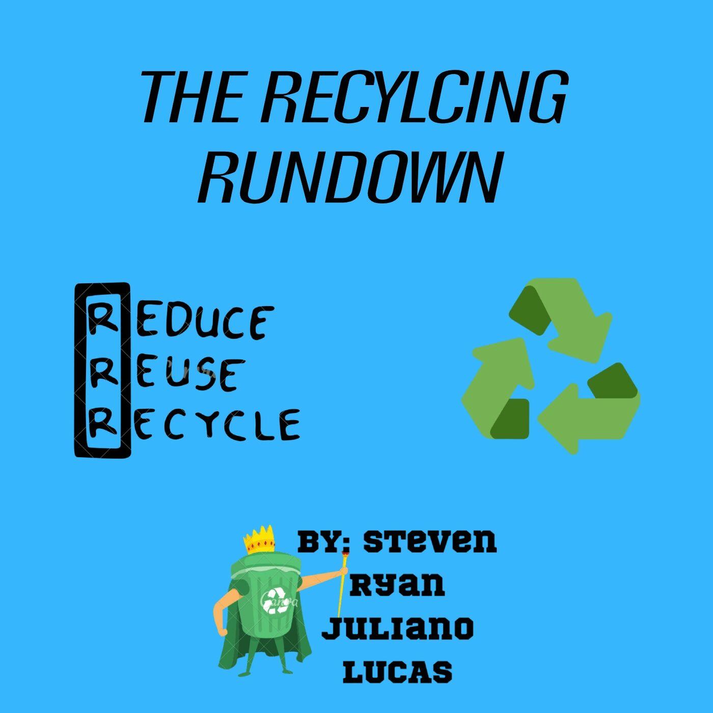 The Recycling Rundown is a brief podcast discussing the positive impacts recycling can have in our community. With a diverse cast of hosts, Ryan, Jules, Steve, and Lucas are sure to cover everything from economics to environment!