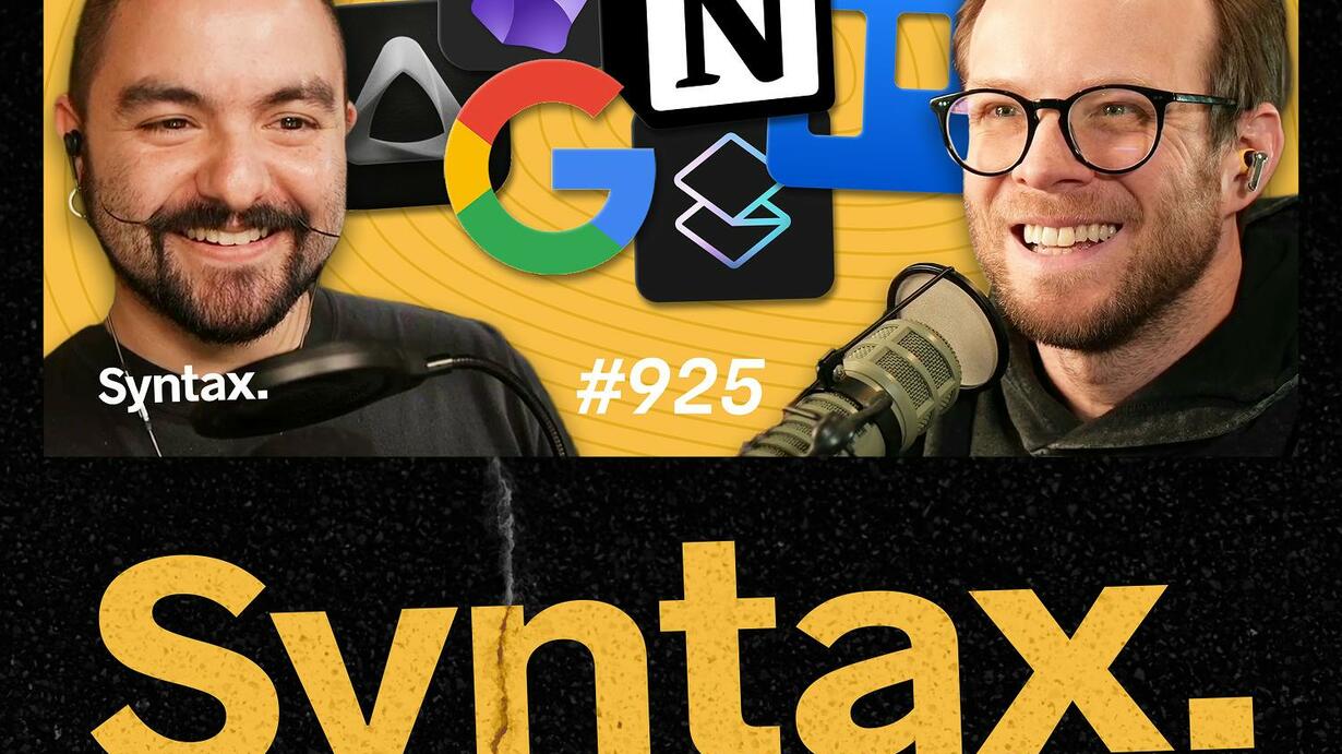 Scott and CJ go full productivity nerd, swapping notes on their favorite web apps for writing, coding, planning, and more. From terminals to to-do lists to dumb phones, it’s a deep dive into the tools powering their workflows. Show Notes 00:00 Welcome to Syntax! 00:35 Brought to you by Sentry.io. 01:56 Text to speech or speech to text. 02:20 Superwhisper. 08:29 Kiro. 16:16 CJ’s current editor preference. 17:59 Finding the right editor. 18:47 Terminals. 20:22 Ghostty. 24:16 Note-taking. 26:32 Obsidian. 30:24 Logseq. 31:03 Todo lists. 31:08 Tweek.so 34:42 Trello. 37:25 Notion Calendar. 38:55 Email. 43:21 FairEmail. 43:43 Dumb phones. 45:10 Olauncher 47:39 Audio Bookshelf. Hit us up on Socials! Syntax: X Instagram Tiktok LinkedIn Threads Wes: X Instagram Tiktok LinkedIn Threads Scott: X Instagram Tiktok LinkedIn Threads Randy: X Instagram YouTube Threads