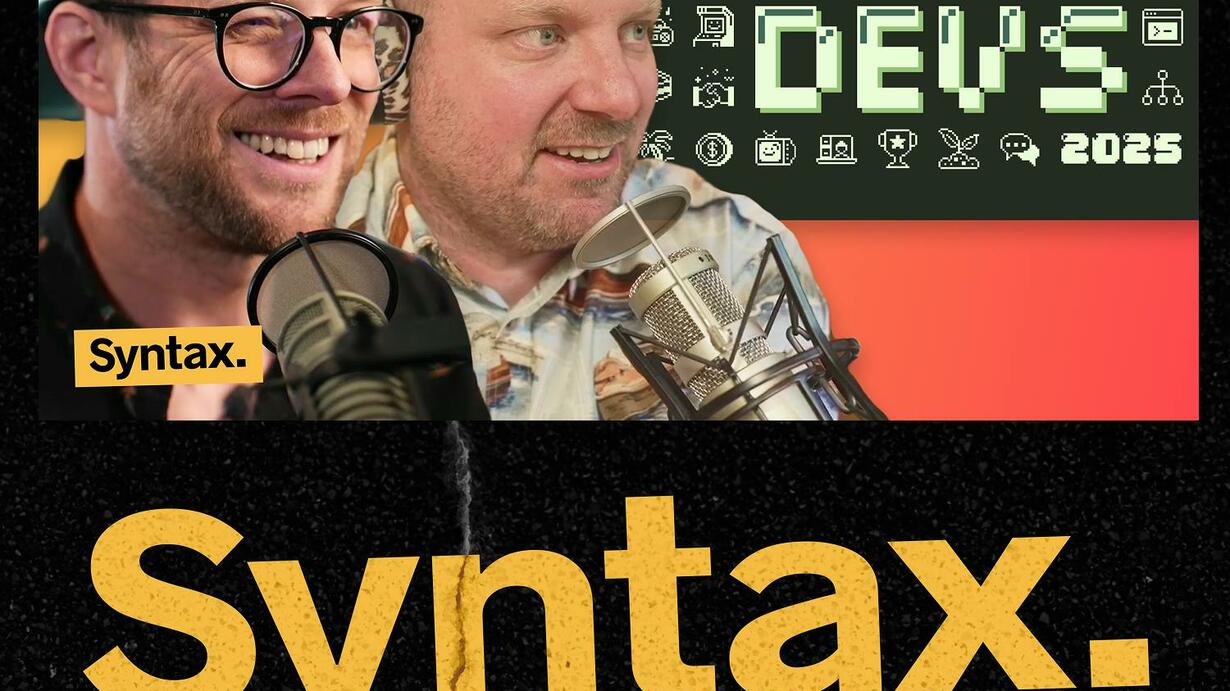 Wes and Scott talk about the 2025 State of Devs survey, diving into trends in salaries, job titles, remote work, health, hobbies, and more. Show Notes 00:00 Welcome to Syntax! 01:44 Brought to you by Sentry.io 02:08 Years of experience vs yearly income 11:48 Layoffs 18:07 Job title 19:55 Remote work 24:40 Job happiness 25:40 Work hours 26:24 Workplace perks 26:53 What phones devs use 27:46 Desktop OS 28:44 Programming languages 29:29 Productivity apps 30:54 Social media 32:13 Median age of RSS feed users 33:41 Community contributions 35:37 Health and fitness 37:01 Health issues 39:11 Scott’s health update 42:28 Hobbies 45:54 Favorite music 47:10 Favorite video games 47:37 Favorite movies 49:35 Metadata Hit us up on Socials! Syntax: X Instagram Tiktok LinkedIn Threads Wes: X Instagram Tiktok LinkedIn Threads Scott: X Instagram Tiktok LinkedIn Threads Randy: X Instagram YouTube Threads