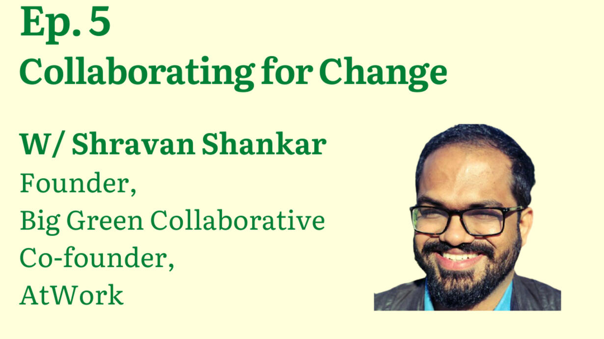 Are you building a sustainability start up? Do you have a product/technology/service that will make a difference? Do you need a network and support system to create an impact? Are you looking to collaborate with the brightest minds in the sustainability space in India? Meet our green guru Mr. Shravan Shankar who is building the perfect ecosystem for you to contribute to India's climate action. Learn from his diverse experience in sustainability, working across policy, corporate sustainability and startup innovation.